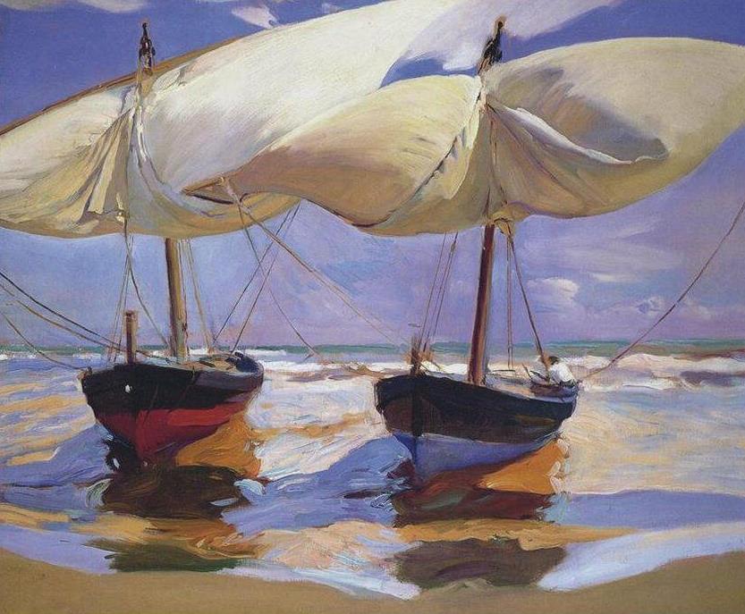 - Joaquín Sorolla y Bastida- Barche in spiaggia 1915