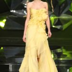 Ho presentato una gamma di colori pastello molto luminosi messi insieme ai vari colori allegri dell’estate come il giallo, il corallo e il blu. I colori vivaci sono adatti alla donna moderna e grintosa. I tagli degli abiti sono geometrici e fluidi con movimenti creati dalla sovrapposizione di veli e di mussola, molte trasparenze.