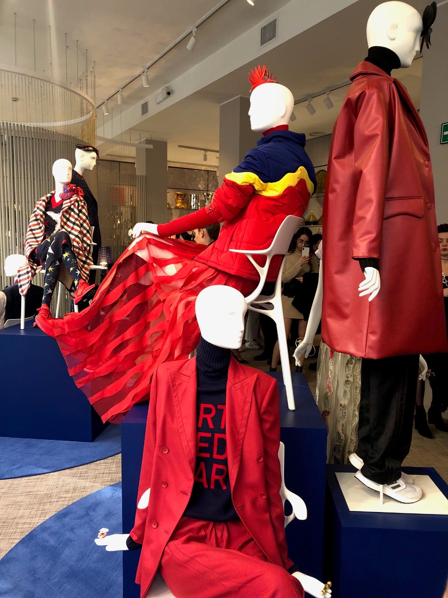 Un’etichetta esplicativa con il nome dell'”autore” su ogni capo uscito da tale sinergia per rispondere alla domanda “WHO MADE MY CLOTHES”. Un numero su ogni pezzo -come accade al mercato dell’arte- per dare visibilità al pregio di una collezione realizzata con tessuti d’archivio delle varie aziende.