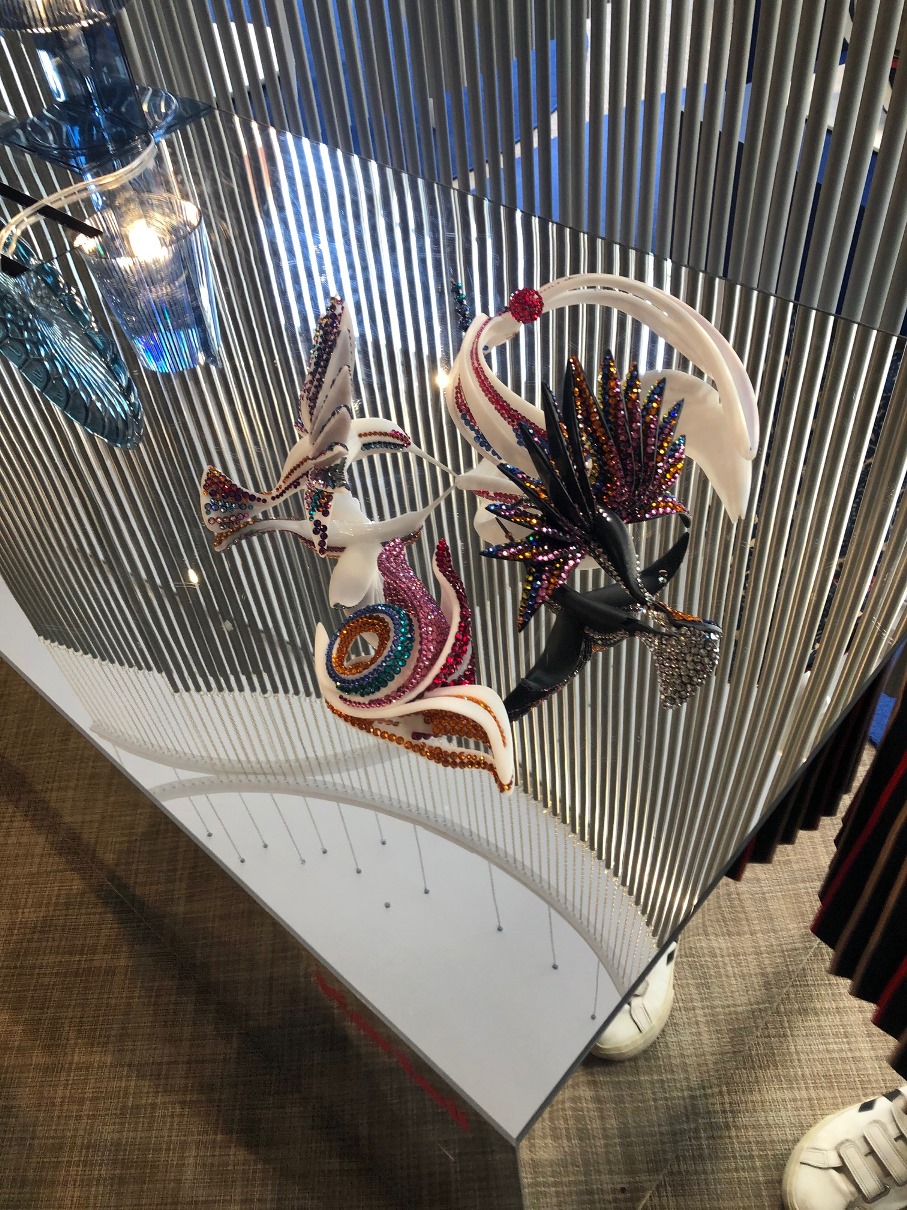 E ancora… animali totem per proteggere -come avi benevoli- una figura femminile che si inoltra di notte nei boschi per stringere ancora di più il legame con ciò che la circonda e la ingloba. Accessori rappresentanti animali fantastici -ognuno volto a diventare guida su un particolare aspetto della vita- concepiti da SWAROVSKI in Upcycled Crystal, a dimostrazione che “ciò che già esiste può acquisire un valore nuovo in una vita diversa”.