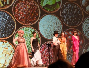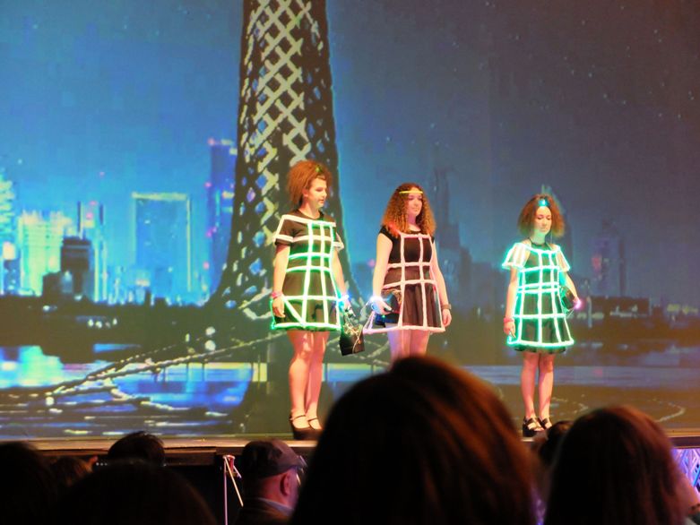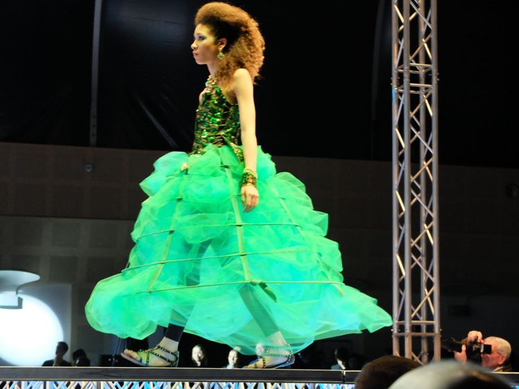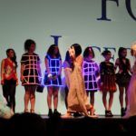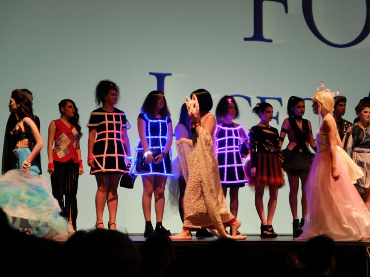Il liceo Artistico Foppa invece mi ha trasportato su di un tapis roulant giocato su alcuni temi quasi impossibili. Quello dei sapori di ispirazione Expo “Il cibo per mente e corpo”, lo “Stravolgere le regole” per arrivare al “Passato nel Presente” attraverso un artistico e creativo percorso metropolitano. Ho visto cappelli da chef rovesciati, adorni di posate di vari colori, abiti ispirati alle spezie: pepe, curry, peperoncino, zafferano per una versione scanzonata della moda e del cibo. Il passato si sposa col moderno negli abiti vagamente gotici, lievemente barocchi, sofisticati da gabbie e crinoline art déco, in un turbinio di led e un chiarissimo richiamo all’Albero Della Vita di Expo.