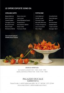 Per quanto riguarda la ceramica (altorilievi, bassorilievi, sculture a tutto tondo), le opere esposte a Palazzo Ducale di Sabbioneta sono di: Magda Ballerini, Elena Contesini, Gianni Federici, Giuseppe Ferrari, Brunella Finardi, Elena Finardi, Elisabetta Ghidini, Bianca Invernici, Isaia Lazzari, Maria Elisabetta Passeri, Renata Raschi, Massimiliano Valenti, Mario Viotto, Francesco Vitale. Invece, autori delle foto sono: Carlo Balestreri, Davide Cavalli, Vincenzo Cerati, Manuele Dellanave, Cristian Favagrossa, Laura Giacomelli, Elena Magni, Anna Manfredi, Paolo Mangoni, Rita Ori, Vincenzo Raeli, Daniele Raschi, Tiziano Schiroli, Giuseppe Storti.