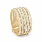 Anche i diamanti di Masai Alta luccicano in primo piano nella loro incastonatura a tennis tra le sfilettature dorate della lavorazione a coil. Hanno un andamento molto sinuoso e morbido che conferisce all’insieme un’allure sofisticata e molto naturale.