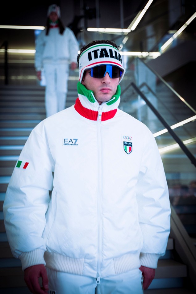 Ma veniamo alle divise della squadra. Per la cerimonia di apertura a firmare le divise ufficiali della delegazione italiana è stata EA7 Emporio Armani. Gli atleti hanno chiuso la sfilata delle nazioni indossando un look tecnico: pantaloni e bomber in twill di lana grigio mélange idrorepellente, dal taglio over, arricchiti da dettagli tricolore, loghi EA7 e CONI e la scritta “ITALIA” sul retro. Per i momenti delle premiazioni e per la chiusura gli atleti indosseranno ancora divise di EA7 Emporio Armani: total white, linee pulite, materiali tecnici e dettagli tricolore appena accennati sulla manica, i polsi, e ancora i colori della bandiera per definire il collo della giacca; il tricolore fodera discretamente l’interno del cappuccio. Un’eleganza discreta con un dettaglio simbolico nascosto: all’interno di giacche e polo è incisa la prima strofa dell’Inno di Mameli, pensato come segno identitario riservato agli atleti. «Ho scelto un solo colore, il bianco, per suggerire armonia con le vette innevate», aveva spiegato Giorgio Armani. «Tra i valori dello sport, il rispetto è forse uno dei più alti, e l’ho tradotto in un’idea di semplicità, pulizia e purezza». L’azzurro, distintivo degli atleti italiani su tutti i campi sportivi, Armani lo ha lasciato alle tute di gara.