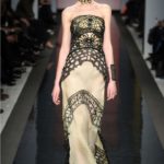 La moda ridisegna volumi, misure e proporzioni. A partire da un modello virtuale si determinano infinite possibilità di scelta, indizi che ridefiniscono il concetto di “fisicità” nell’abito, le regole che, a partire dal corpo, possono essere imposte alla materia fluida del tessuto. La maison Gattinoni ed il suo Direttore Creativo Guillermo Mariotto hanno presentato, presso il Salone d’Onore del Museo Nazionale delle Arti e Tradizioni Popolari dell’Eur, una collezione haute couture pensata per la primavera/estate 2013, che aspira alla multidimensionalità, che indaga visioni e riproduzioni prospettiche, assieme alla possibilità di lavorare i tessuti secondo le regole della computer grafica. Le creazioni di Gattinoni hanno sfilato fra gli abiti esposti nell’ambito della mostra “La Seduzione dell’Artigianato ovvero: il bello e il ben fatto”, curata dal Presidente della maison Stefano Dominella e visitabile fino al 10 febbraio, offrendo una nuova interpretazione del concetto di artigianato sartoriale. Il parterre, come sempre ricco di personaggi di rilievo e volti noti del mondo dello spettacolo, è stato dotato di occhiali 3D. Eppure l’universo 3D è solo il mondo di partenza, per costruire la fascinazione di una quarta dimensione che aggiunga illusione all’illusione, attraverso materiali e pannelli di stoffa che sembrano avere perso per magia il loro peso.