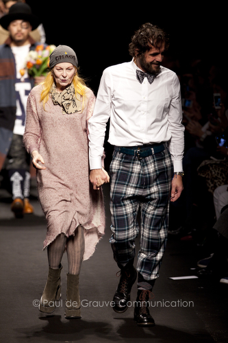 La battaglia che Vivienne Westwood combatte per l’A/I 2013-14 è la difesa del nostro Pianeta, e chiama tutti a schierarsi in questo nobile combattimento. In tempi passati i contenitori riciclabili firmati dal suo estro erano stati i precursori di un impegno ecologico. Ma ora va a fondo.