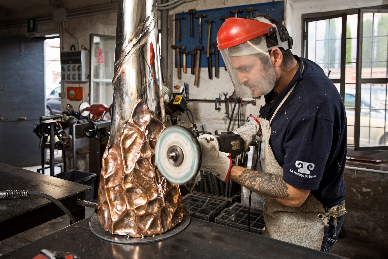 Tra i curatori di questa mostra “diffusa”, che si dipanava in 16 tappe tematiche disegnate da Alberto Cavalli (direttore della Fondazione Cologni dei Mesteri d’Arte, fondata da Franco Cologni nel 1995 a Milano per salvaguardare e promuovere il patrimonio dell’artigianato artistico di eccellenza) all’interno del magnifico ex-convento di San Giorgio, vi erano personaggi del calibro di Jean Blanchaert, Stefano Boeri, Michele De Lucchi, India Madhavi, che hanno allestito non solo opere di alta manifattura, ma anche installazioni e laboratori che esaltano il meglio del knowhow europeo, con la possibilità per il pubblico di ammirare al lavoro un’ottantina di Maestri, oltre a quelli presenti virtualmente grazie alla tecnologia più avanzata, che “materializza” ad esempio un tabarro veneziano o un vetro soffiato, un costume teatrale o una stufa in maiolica.