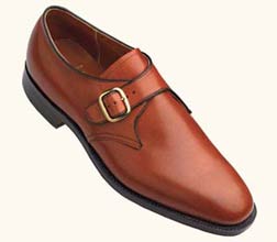 Ultimo tipo di scarpa più informale, anche se l’uso che se ne fa farebbe intendere il contrario, è la Monkstrap, così denominata perché la sua fibbia ricorda i sandali dei monaci. L’apprezzamento di tale calzatura è abbastanza controverso, in quanto molti la considerano una negazione dell’eleganza classica proprio per la presenza di una o due fibbie che rendono l’appoggio del pantalone un po’ ostico. In effetti la Monkstrap andrebbe indossata con pantaloni stretti in fondo e non troppo lunghi, in modo da evitare effetti di arricciatura sulla fibbia.