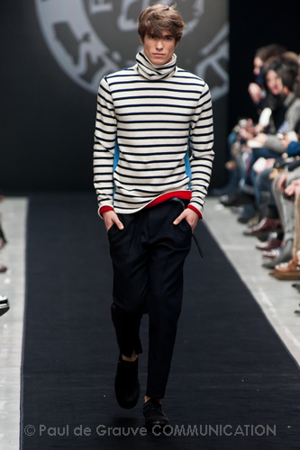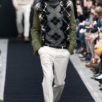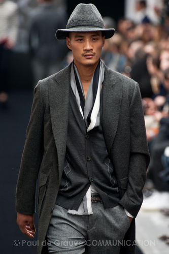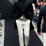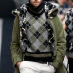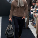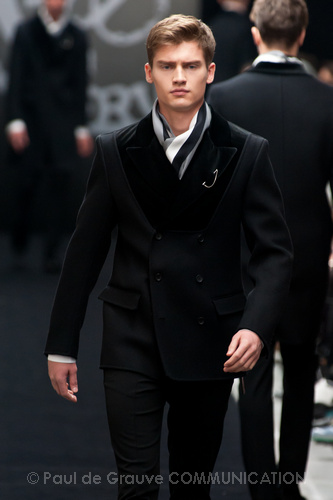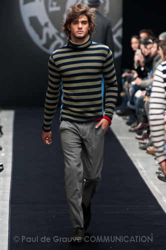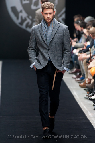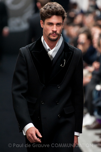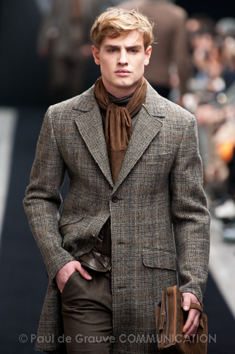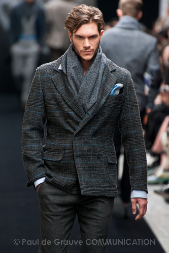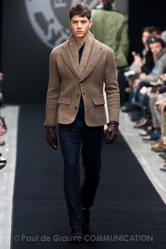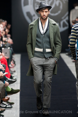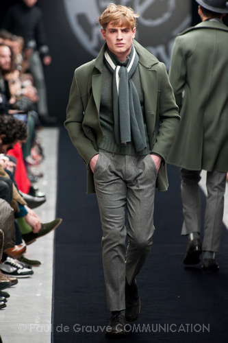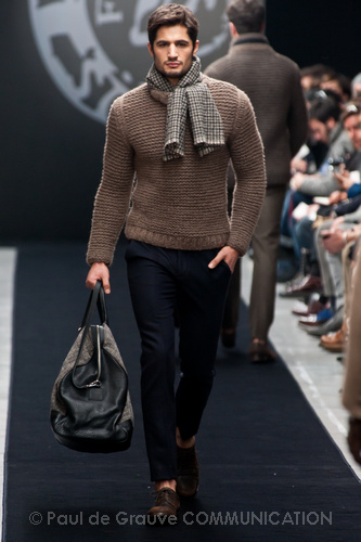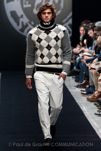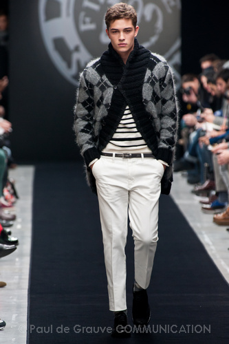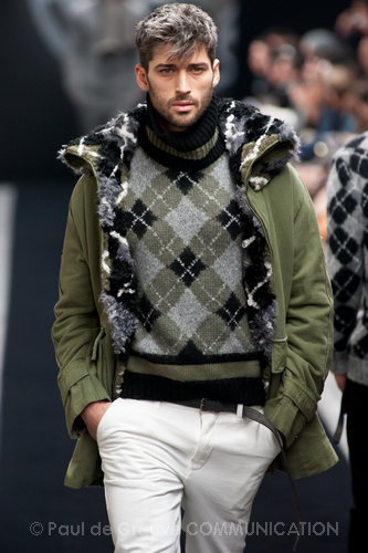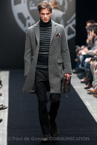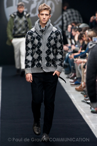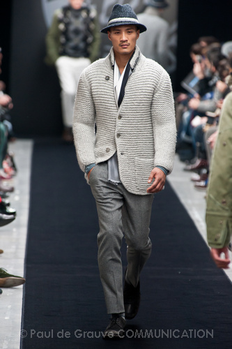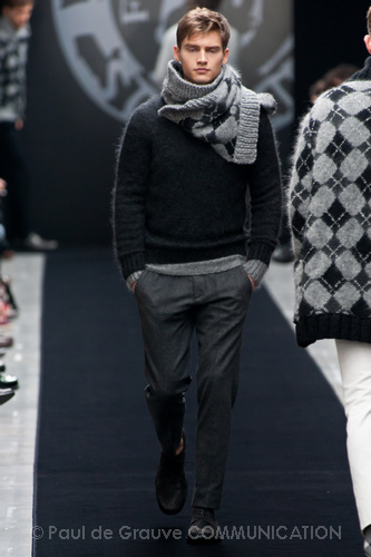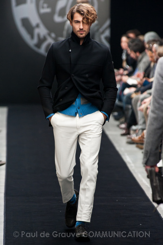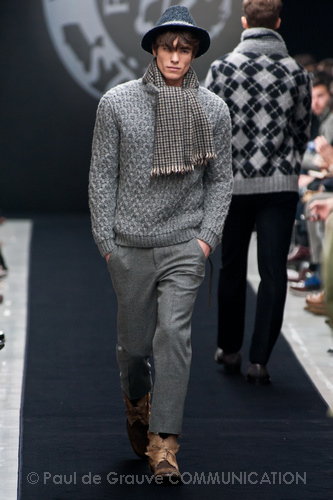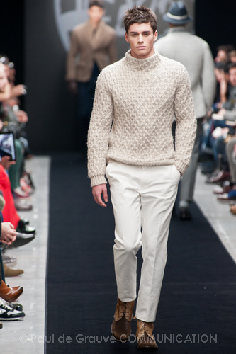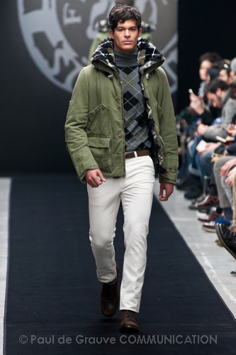 Le linee affusolate,il pantalone bianco in un guardaroba invernale, le giacche smoking con plastron e revers in velluto e raso; i parka in cotone usurato doppiati in pelliccia lavorata ad intarsi disegno argyle; la lana cotta stretch delle giacche e cappotti; la lavorazione a taglio vivo e le cuciture a contrasto magari con insinuazioni di rosso e di giallo; i trattamenti che danno effetto usurato, sono tutti elementi moderni che arricchiscono i capi più tradizionali.