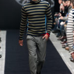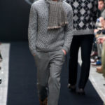 Esaminiamo ad esempio la maglieria. Le maglie sono lavorate ai ferri ma sembrano giacche, mescolano i disegni argyle con le righe; hanno il collo alto e sono lavorati a punto pelliccia; accompagnano i capi sartoriali, scombinando in questo modo regole di stile consolidate.