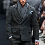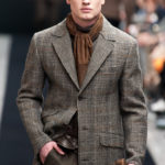 I quadri del principe di galles, pied de poule di varia grandezza si mescolano tra loro, su sciarpe, giacche e cappotti, anche qui scopriamo che lo stilista ha saputo tralasciare, in nome di una modernità più ardita, una duratura regola –quella di non mescolare disegni diversi- senza venir meno alla classicità dei pezzi.