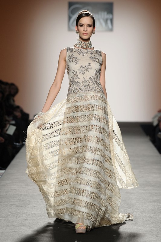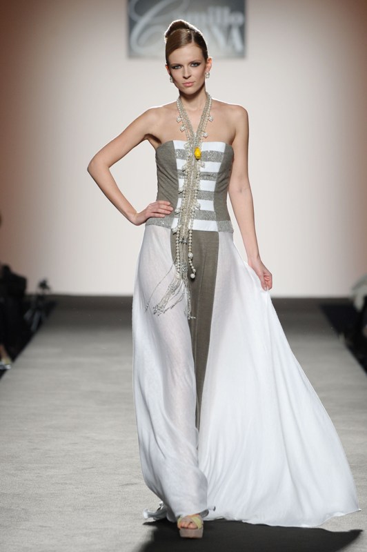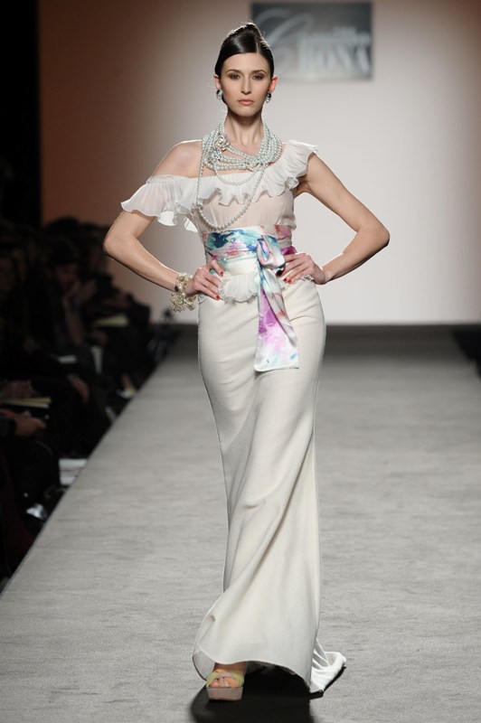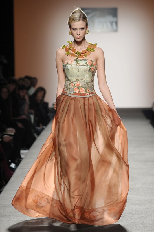 Camillo Bona ha presentato nell’ambito di AltaRoma la sua collezione haute couture per la primavera-estate 2012, assumendo come metafora e ispirazione un’icona viva nell’immaginario collettivo, la Matrëska o Matrioska. La collezione non vuole far riferimento al costume o all’aspetto formale della bambola ma alla sua simbologia e al suo significato primordiale. Il termine Matrëska in russo significa “femminilità” e “potenza-fertilità” quindi rappresenta colei che da origine alla vita. Identificata con la Dea della terra, simbolo della donna nel suo divenire, la Matrioska opera da stadio a stadio, da un macro a un micro cosmo e viceversa, cresce e decresce, si rivela e si rinnova; come in un gioco di scatole cinesi l’una è contenuta nell’altra. La logica del meccanismo a incastro si rispecchia immediatamente nelle creazioni di Camillo Bona, nell’uso dei tessuti lavorati, sovrapposti, caratterizzati da intarsi e velature.