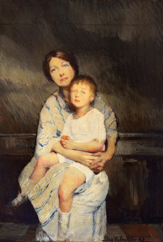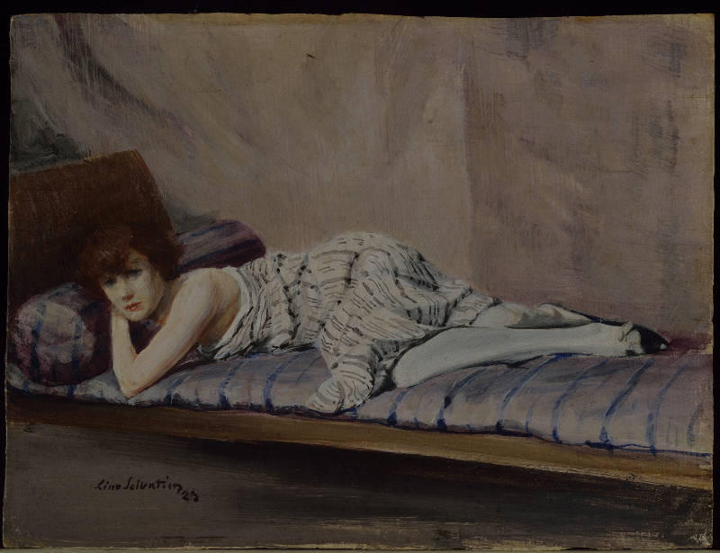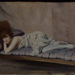 Questo pittore (figlio di quel Riccardo Selvatico che fu poeta, commediografo, presidente dell’Accademia di Belle Arti e sindaco di Venezia, nonché co-fondatore della Biennale nel 1895) dedicò sempre alle donne uno sguardo attento e sensibile, riuscendo a coglierne non solo la parvenza esteriore, ma anche i moti dell’animo. Pochi come lui hanno saputo levare dalla mondanità il velo di frivolezza ed effimero edonismo che solitamente la avvolge, proprio perché è riuscito a conferire peso interiore, solidità mentale, spirituale e affettiva, alle sue creature da salotto, ricorrendo ad una pennellata fluida, moderna, vibrante – pur non rinnegando tecniche e stilemi naturalistici dell’800 – ma soprattutto giocando con la luce.