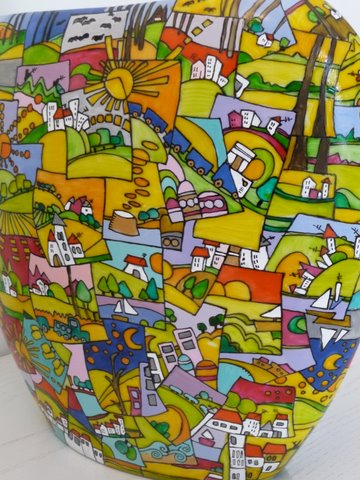 Ma come è nata la passione per la decorazione della ceramica in questa architetto-urbanista veronese, notturna come una falena? “Ricordo le notti in cui accoccolata sulla poltrona di vimini guardavo mio papà che, tornato da una giornata di lavoro, disegnava sul tavolo della cucina sfumando alberi e acqua e cielo con le dita e la polvere di pastello” racconta Emanuela. “Stavo lì, silenziosa e curiosa, a guardarlo disegnare fino a notte fonda. Mio papà però non é un pittore (Giorgio Volta è un noto cardiologo, n.d.r.). Quel lavorare di notte aprendo gli occhi su paesaggi e colori, facendo scivolare via facce e rumori e preoccupazioni, liberando la mente nel silenzio della casa, é sempre stato anche per me il momento più vero della mia giornata. Io sono un architetto, ma non disegno case. Vivo tra le norme, conosco la gente dei piccoli paesi, ascolto le loro storie, disegno i loro spazi… sono un’urbanista, un lavoro che riempie le mie giornate e che vorrebbe impossessarsi anche delle mie notti. Ma la notte no, la notte io sono un’altra persona. Divento l’Archigiana”.