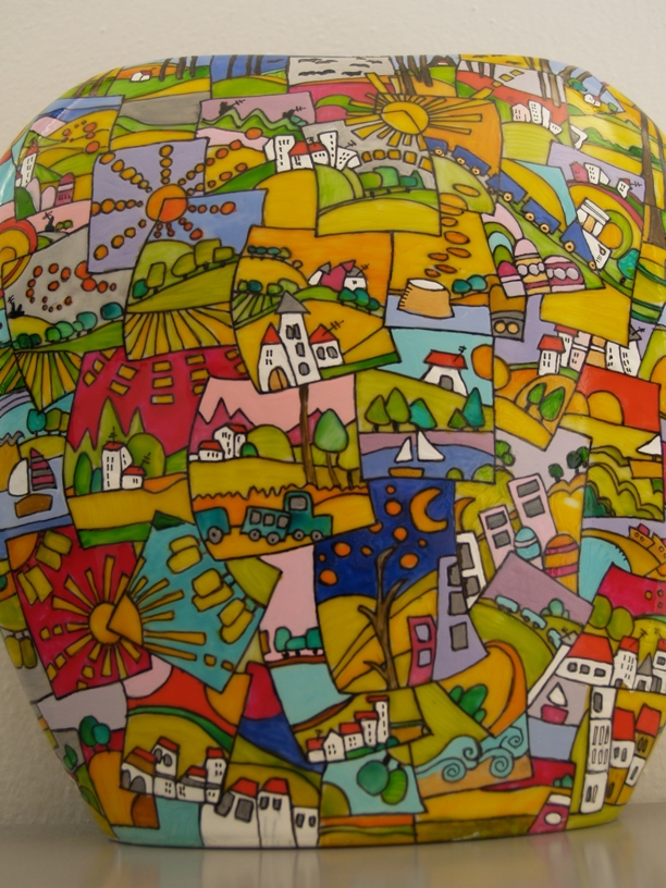 E come tale, il personaggio alter ego ha ormai acquisito vita propria, frequenta le fiere, dispone di suoi spazi in alcuni negozi, ha un sito (archigiana.blogspot.com), tiene corsi per bambini e adulti. “Mi piace portare nelle case qualche pezzo colorato” spiega Emanuela. “Mi piace dipingere su oggetti che hanno una funzione pratica, mi diverte lavorare con i bambini ad addomesticare i colori sugli oggetti. Per chi dipinge non c’é giusto o sbagliato, e neppure bello e brutto, é una grande libertà. I miei figli quando qualcuno chiede che lavoro fa la mamma rispondono: l’Archigiana!”.