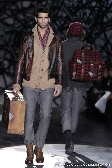 A prima vista avremmo detto che si trattava di un emigrante che affronta con la sua vecchia valigia il viaggio verso terre sconosciute: quell’ immagine che ci ha commosso nel film Titanic. Poi notiamo che l’uomo Iceberg della prossima stagione anche se un po’ trasandato – barba lunga, capelli in disordine, jeans usurato – è negligentemente accurato nel suo abbigliamento, quasi raffinato.