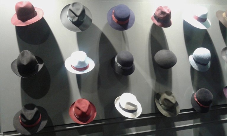La maison di cappelli più amata dalle celebrità internazionali, ha deciso di perpetrare il progetto “ripesca” attingendo ai propri archivi le -attualissime forme antiche- del cilindro, di un dressage del 1800, e della bombetta, tipica, quest’ultima, della City londinese del secolo scorso, amata da Charlie Chaplin e ancor oggi non rara da ammirare sul capo d’uomini d’età, o più giovani, seduti in un caffè londinese o in metropolitana. Talvolta, indossata in liaison con un bastone dal manico d’argento.