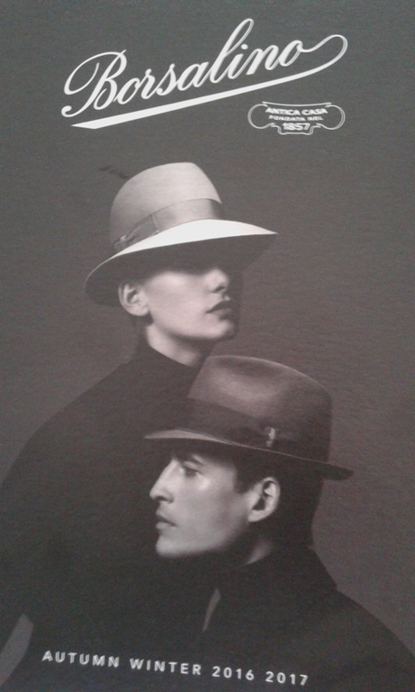 Per la collezione autunno inverno 2016/ 2017, l’antica maison Borsalino ha tratto ispirazione dal noir, traducendo alcune delle sue forme tradizionali nelle cromie del nero, del blu e del grigio, senza peraltro dimenticare quella sensazione di levità donata dalle tinte pastello: splendidi i lavanda, i glicine e i celesti chiaro che tanto ricordano il cielo quando è sbiadito dalle nuvole.