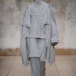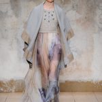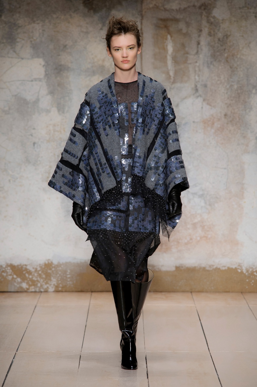 E poi collage di velluti, patchworks, sublimi intrecci di cachemire, e sofisticazioni nei volumi che tracciano l’identità di una collezione pensata per una donna rigorosa e seducente al contempo.