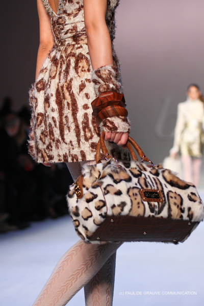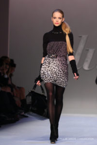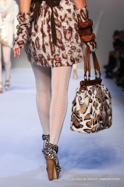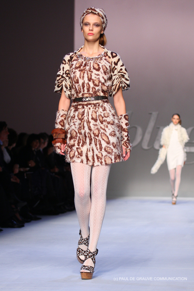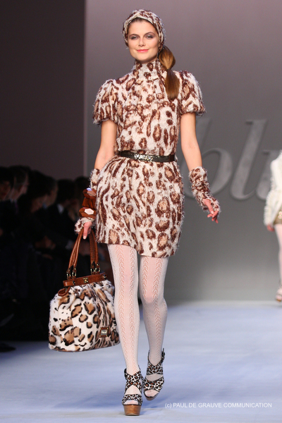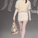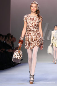 Ma poi improvvisamente si cambia registro: Anna Molinari propone il total look animalier, che da un nostro punto di vista risulta un po’ troppo carico: abito, guanti, fascia sui capelli, sandali. Bisogna comunque ammettere che la maestria della stilista riesce ad addolcire, attraverso le forme e i dettagli, una stampa per natura decisamente aggressiva, lasciando comunque intravedere un tocco di eleganza.