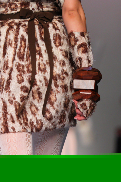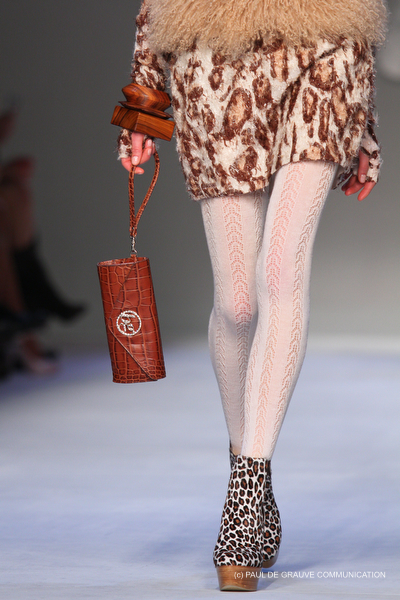 Per gli accessori pochette in lamè oro, argento o in stampa animalier, ma anche shopper in cavallino unito e stampato, in cotone stampa animalier degradè o in stampa cocco. I sandali, sempre in lamè o pelle stampa cocco, sono incrociati in cavallino unito e stampato, con eccentrici plateau in legno e laccati. E poi collane di perle e strass, bracciali in legno e plexi e vistose fasce per capelli in palettes.