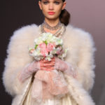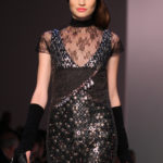 L’abito diventa tela per l’arte del vestire e i ricami illuminano il nero più rigoroso ed esaltano sfumature metalliche nei toni del grigio e dell’argento.