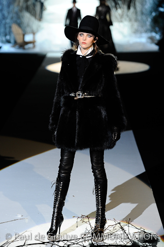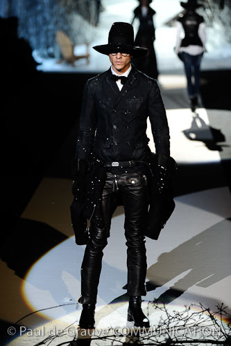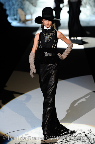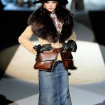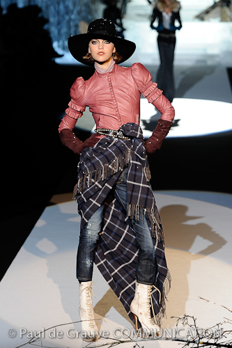 Sempre sulla linea del risparmio, voler riutilizzare gli stessi accessori già pronti della precedente sfilata? Gli stessi cappelli a tesa larga in panno , gli stessi cinturoni borchiati e invecchiati dove bastava aggiungere decori di cristallo, gli stessi fazzoletti annodati al collo, persino le bretelle”¦..