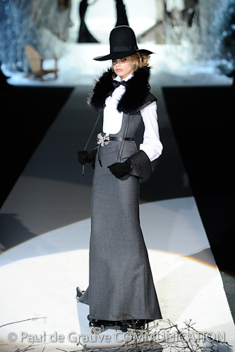 L’ambientazione e l’ispirazione della collezione donna autunno-inverno 2011-12 dei gemelli Caten è la stessa della collezione uomo presentata sulla stessa passerella di Via S. Luca solo un mese fa: i pionieri che hanno colonizzato l’ America e che si sono insediati in uno stretto e nevoso cañon.