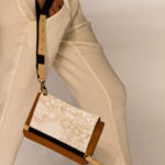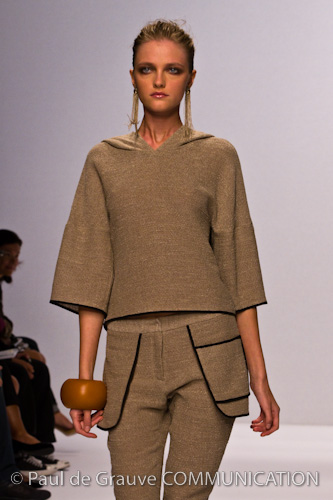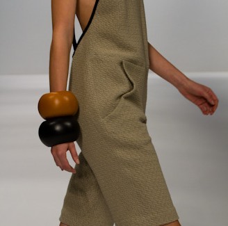 I materiali sono canapa, iuta, cady e georgette di seta mescolati tra di loro. Poche stampe, a fiori stilizzati o le tradizionali GEO che naturalmente compaiono negli accessori borse e pochette.
