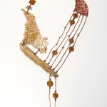 Così la mostra ha offerto gioielli ispirati a molteplici temi, tra cui il maestoso complesso marmoreo del Laocoonte, la selvaggia natura mediterranea, l’asprezza del Peloponneso, l’Odissea omerica, realizzati con materiali che spaziano dai più preziosi a quelli meno nobili come legno, sassi, sabbia, alghe, cuoio, carta, ecc. I colori si sono rivelati non solo “solari”, ma anche cupi a simboleggiare il viaggio verso l’ignoto, verso promesse spesso non mantenute, verso la fatica e talvolta la tragedia, come tutt’oggi evidenziano i naufragi di tante imbarcazioni di migranti. Comunque, come scrive Kavafis, “Sempre devi avere in mente Itaca, / raggiungerla sia il pensiero costante. / Soprattutto, non affrettare il viaggio; / fa che duri a lungo, per anni, e che da vecchio / metta piede sull’isola, tu, ricco / dei tesori accumulati per strada / senza aspettarti ricchezze da Itaca”.
