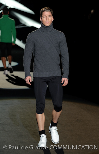 Detto ciò, l’impegno è tutto nel creare capi confortevoli guardando alle esigenze di questo sport particolare. Solo da questo punto di vista giustifichiamo il fatto che una collezione invernale presenta capi pesanti giacconi e cappotti in pelle, maglia o jersey, a cui lo stilista ha tagliato le maniche. Perché in questa disciplina, anche se gli atleti -è ovvio- vanno a vogare magari con una canottiera o una t-shirt, la libertà di movimento delle braccia è fondamentale per la performance, indipendentemente dalla stagione.