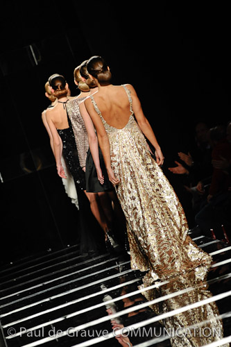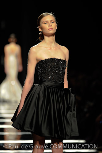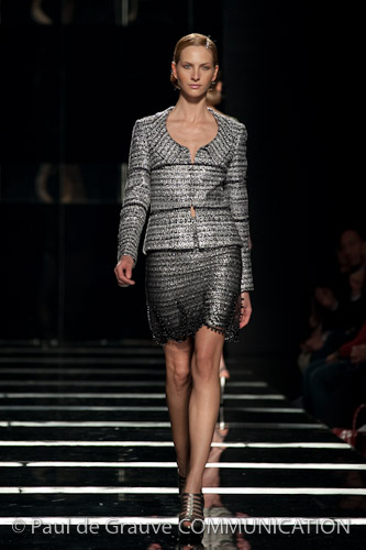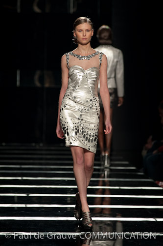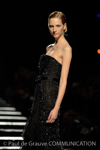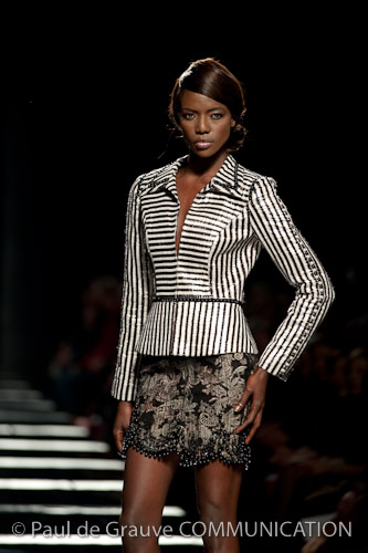 L’Haute Couture di Tony Ward punta per la P/E 2011 su abiti che ricordano le architetture metropolitane, che scolpiscono il corpo costruendo armonie e fascinazioni dotate di una femminilità intensa. Lo stilista gioca con contrasti e chiaroscuri per rendere fluidi i volumi e le forme. Pietre e cristalli accendono gli abiti che esaltano il profilo del corpo evocando i bagliori, lo skyline, le linee seduttive e suadenti, dello scenario metropolitano diurno e notturno. Nelle creazioni dello stilista si realizza un intreccio poetico, semiotico ed estetico fra la città e i singoli capi. Conquistano la passerella tailleur in bouclé, abiti lunghi e corti, fasciati o svasati, shorts e giacche gioiello, comunque femminili e seducenti. Gli abiti a sirena sono particolarmente belli: le sirene contemporanee di Tony Ward riecheggiano il fascino delle dive hollywoodiane degli anni ’30.
