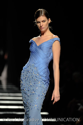 I capispalla e le giacche, dalle linee sagomate e armoniose, sono trapuntati di perle pregiate e di pietre: le giacche-accessorio sono il vero leitmotiv di questa collezione. “Ho curato molto orli e rifiniture – ha affermato lo stilista italo-libanese – perché l’esperienza e la costante sperimentazione, hanno fatto si che siano proprio i dettagli i miei elementi stilistici distintivi, la mia firma nella moda. Le rifiniture sono elementi vivi che danno valore ed anima alle mie creazioni di Haute Couture”.