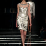 Le spalline tipiche delle divise militari, divengono sfavillanti dettagli color oro. La cura del dettaglio ribadisce il valore delle singole creazioni; la sartorialità ruba i segreti all’arte orafa per trasformare i vestiti in oggetti preziosi.