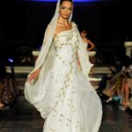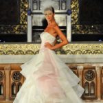 Miryam Pieralisi, ha mostrato i suoi abiti realizzati in seta pura come l’organza, charmese, i tulle, il mikado e pizzi e innovativi tessuti spalmati, arricchite da ricami in cristalli di boemia, swaroski, fili d’argento e piume.