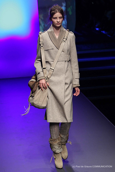 Sfilano capi caldi e avvolgenti, non solo per gli accostamenti cromatici, ma anche per l’utilizzo dei tessuti: pelli e pellicce sfoderate, che si adattano bene a giochi di volume e di sovrapposizioni comode, protettive e sempre femminili.