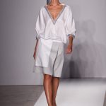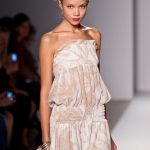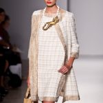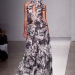 Le sue collezioni prêt-à-porter erano sempre all’insegna della classe e del gusto: la silhouette poteva essere fasciante ma non eccessivamente stretta, gli orli sempre al ginocchio e le scollature rese più gentili dai fiocchi appuntati sulle spalle e sul décolleté -scrivevamo per l’autunno/inverno 2010/11. In quella occasione notavamo come, attingendo agli anni Settanta, aveva costruito una silhouette rigida con abiti a tubo, segnati in vita; accorciato l’abito lungo, e irrigidendo l’orlo, lo aveva trasformato in una corolla.