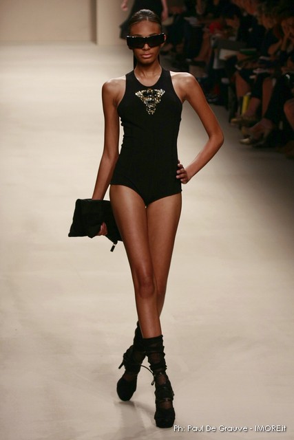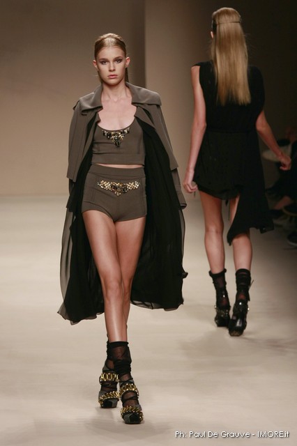 Le scarpe sono zeppe altissime con lacci da schiava, che si indossano anche sopra le calze e i calzini. L’occhio non può non notare l’eccessiva trasparenza, le scollature profonde e le gambe nude, evidenziate da canotte effetto see through e micro shorts tipo mutande.