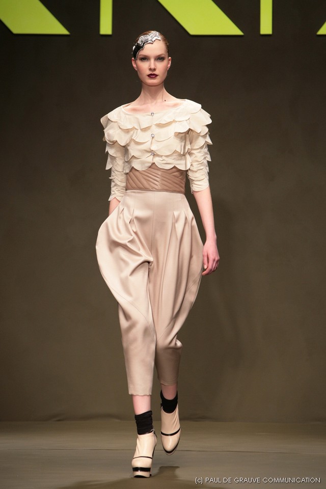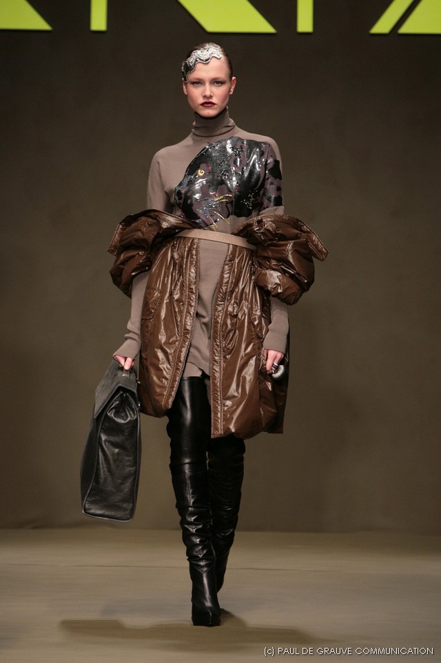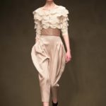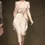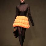 Il commento a fine sfilata è d’obbligo: collezione scenografica, abiti scenografici, performance scenografica; da applaudire l’uscita dei due cappotti in bianco e nero. Impossibile non notare la donna che osa portare questi abiti e non solo per i colori adatti ad essere avvistate come “segnali nella nebbia”, ma anche per la loro costruzione, dove è riconoscibilissima la mano della stilista.