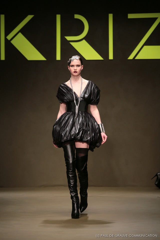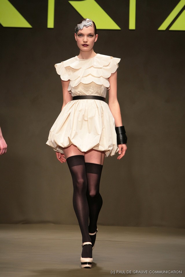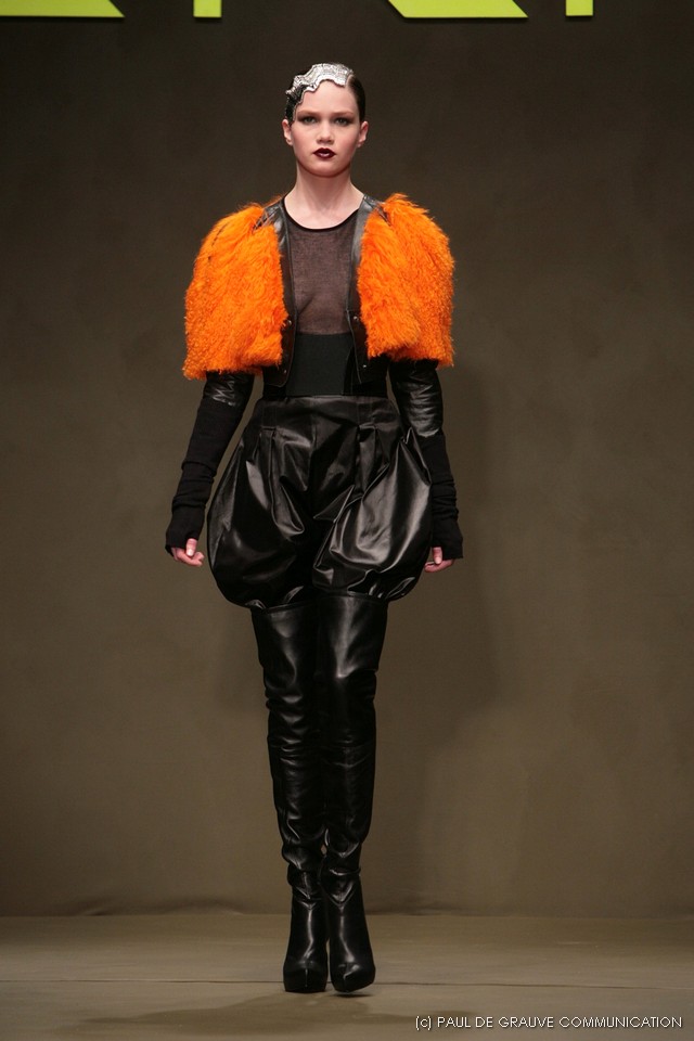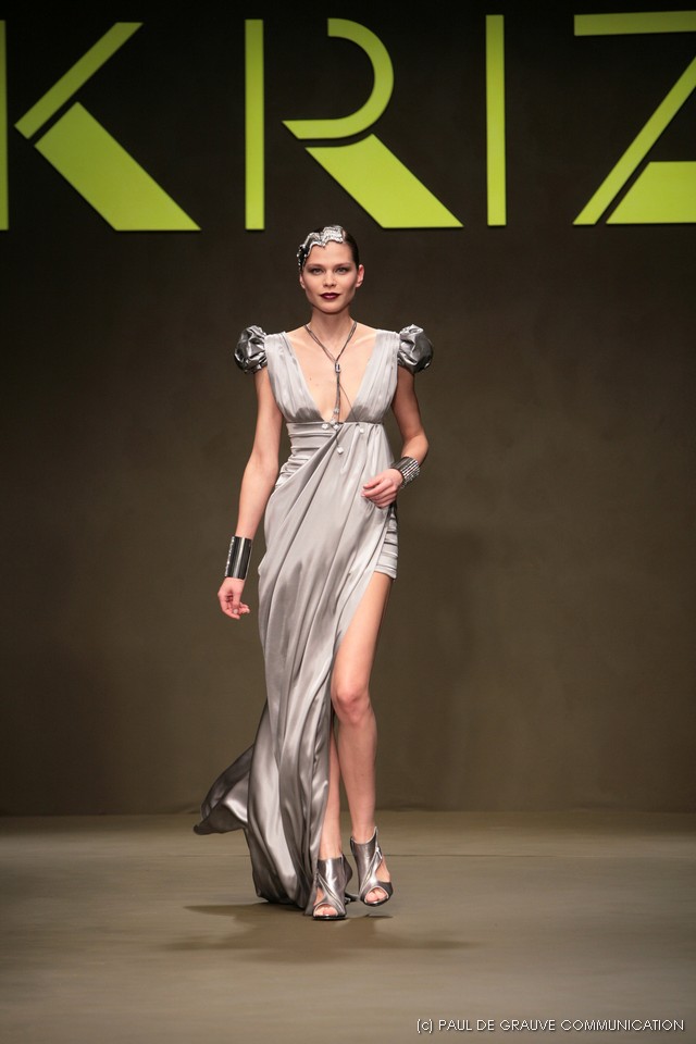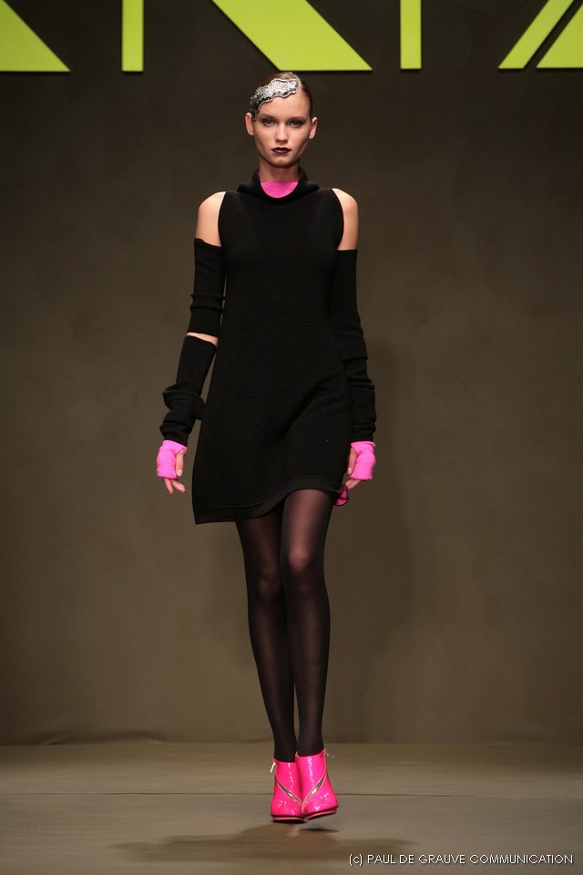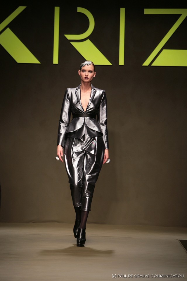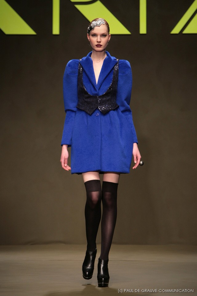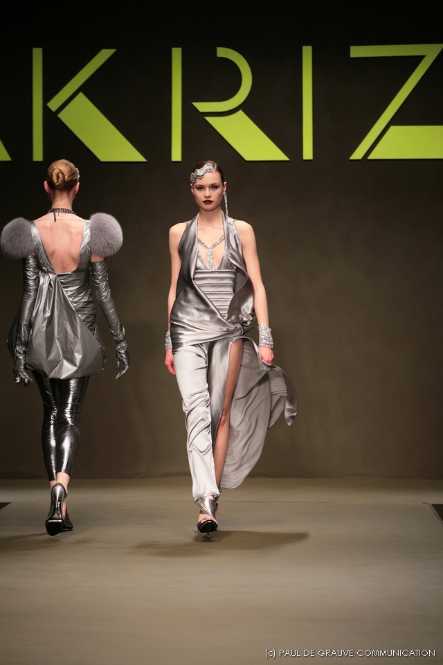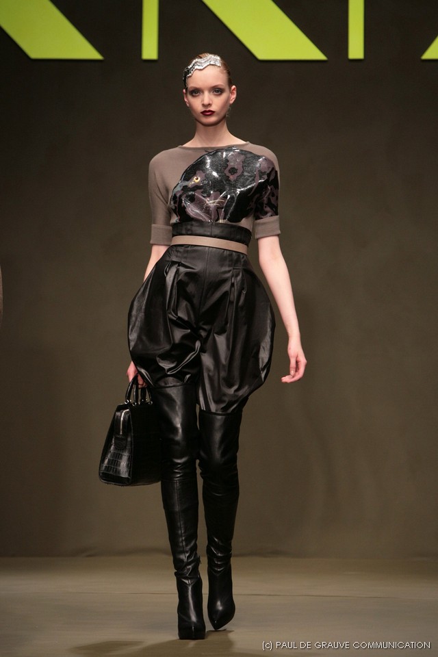La linea ad anfora raggiunge una elegantissima espressione nell’abito lungo rosso cupo. Risulta più sbarazzina negli abiti corti da sera realizzati in diversi materiali, accompagnati di dettagli di pelliccia sintetica mongolia, giallo, fuxia, arancio o portati con corti soprabiti dello stesso materiale. Si fa meno evidente, lasciando spazio ad una linea corolla negli abitini a balze in colori solari. Si perde negli abiti lunghi scivolati e mossi in tessuto argento o in quelli a balze che ricordano lo stile charleston degli anni “˜20/’30.