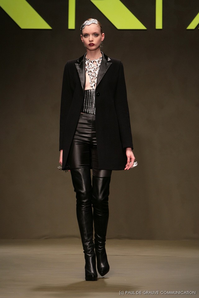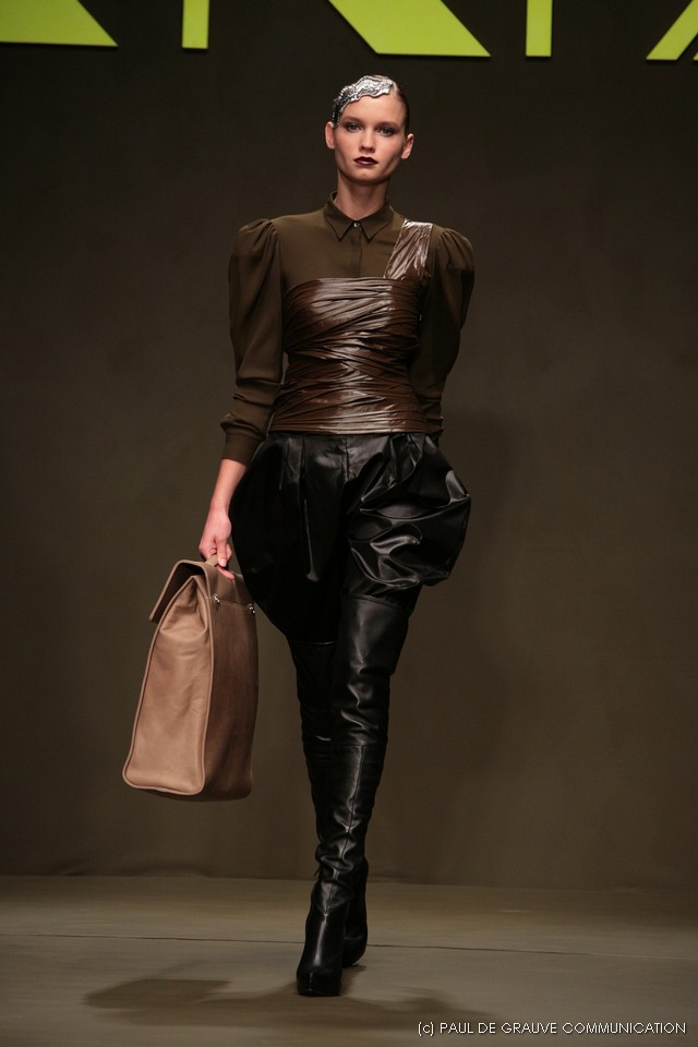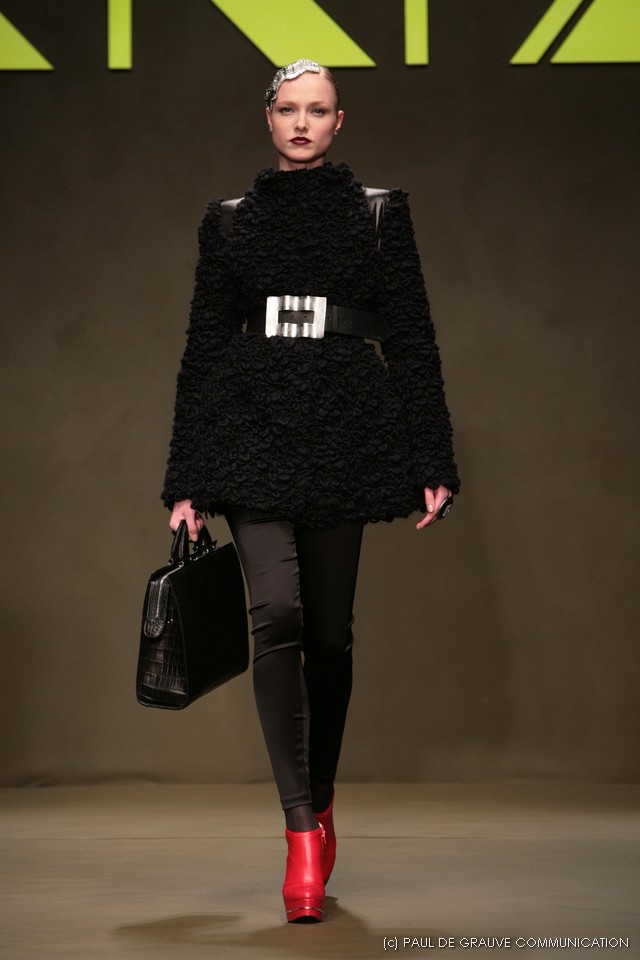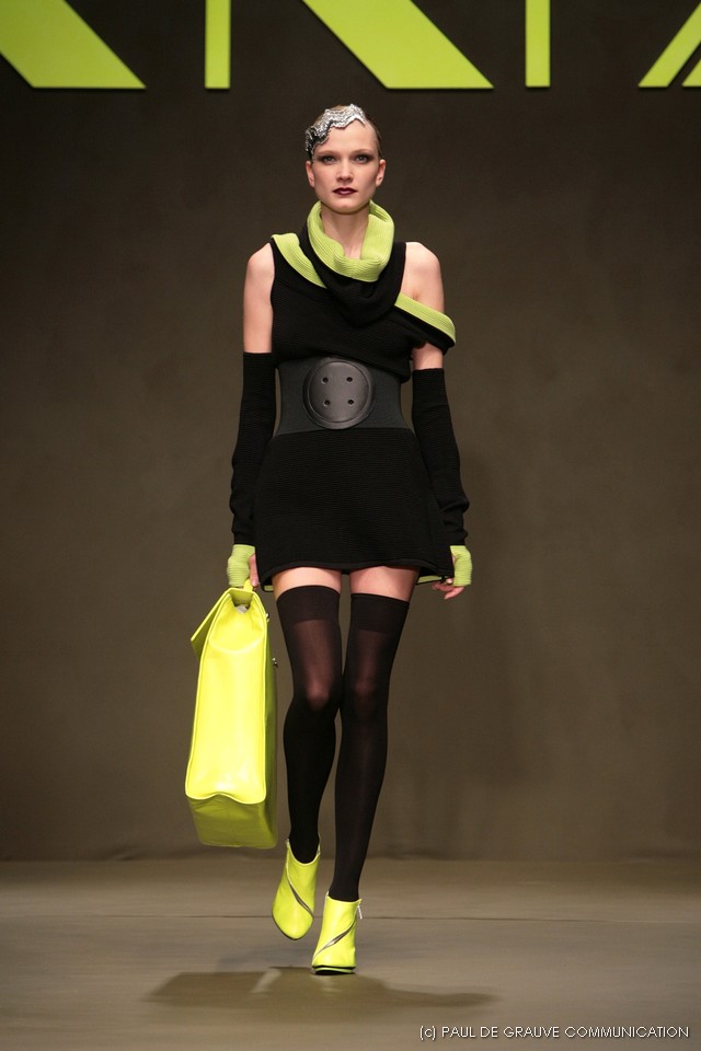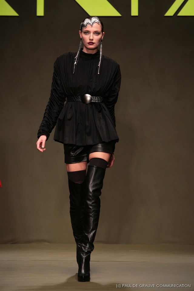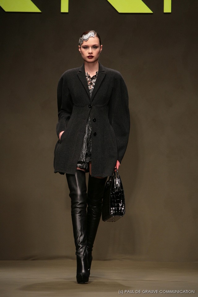 Gli accessori sono maxi borse geometriche o pochette. Stivali altissimi, e tronchetti. E naturalmente le alte cinture, veri bustini in pelle per segnare la vita. Spiccano le collane multifilo e i maxi orecchini.