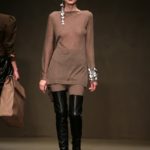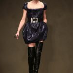 Il taglio delle gonne è decisamente corto. L’effetto è accentuato dagli stivali molto alti e le calze autoreggenti che sottraggono eleganza all’insieme.