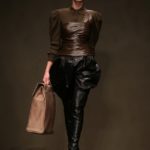Si parte con pantaloni alla cavallerizza in pelle marrone o nera a vita alta, abbinati a maglie e camicie con maniche a sbuffo, e accompagnati da piumini indossati in modo da lasciar intravedere la maglieria.