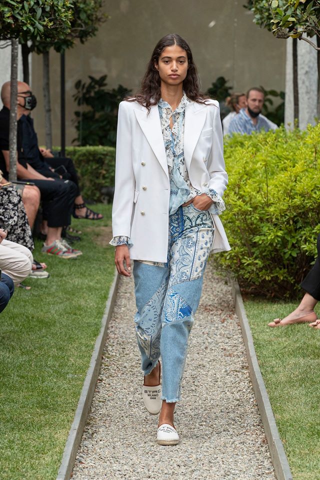 Coccolati dalle musiche di Ennio Morricone e adulati dalla bellezza delle arcate dei chiostri dell’Hotel Four Season il 15 luglio la trepidazione collettiva di gustare di nuovo il movimento del cutwalk non ha lasciato delusi. Ristretto numero di ospiti e diretta in streaming. La ripartenza comincia da Etro.