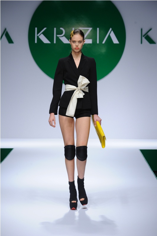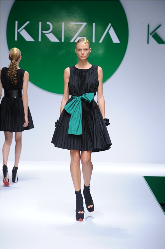 Krizia è un marchio facilmente riconoscibile e questo è, più che mai oggi, un pregio, perché nel momento di crisi si è portati a cercare novità che accontentino il mercato anche se ciò comporta tradire il proprio background. Scopriamo invece una continuità di ricerca dove gli esercizi stilistici tendono a creare nuove geometrie e nuovi volumi , e quindi nuove proporzioni. Una sperimentazione a cui Mariuccia Mandelli ci ha abituato, ma che continua a sorprenderci ad ogni nuova stagione.