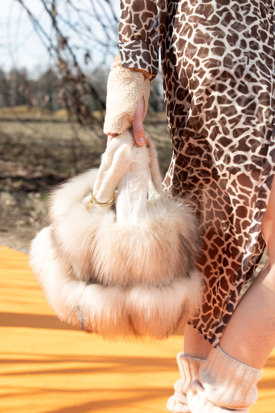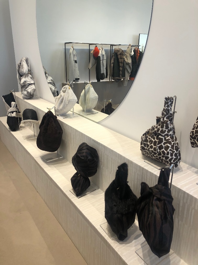 Tra gli accessori non manca l’iconica borsa firmata da Simonetta Ravizza la Furrissima con varianti in visone e in shearling nelle diverse dimensioni: baby e charm. Con questa collezione si aggiunge alle tante varianti anche la “Furrissima basket”. E poi il cestino/panier rivisitato con tocchi di pelliccia e montone. Tra i cappelli troviamo la cloche in montone colorato, il modello aviator, il baseball cap con visiera in tessuto tecnico e montone maculato. Ma anche babbucce in scarti di pellami e caldi guanti in montone.