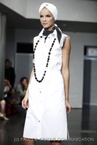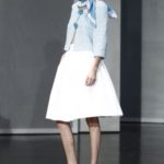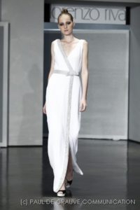 La sera è ancora più chic con gli abiti in cady e georgette con plissettature o applicazioni di paielletes argentate.Elegantissimo l’abito lungo total white impreziosito al centro da una luminosa cintura con fiocco, tono su tono. Dai tailleur alle tute leggere d’ispirazione seventies, il punto vita è sempre sottolineato, ora da cinturine, in pelle o in tessuto, ora da coulisse e la femminilità è sempre in primo piano.