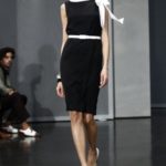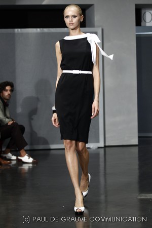 A chiudere la sfilata, come sempre avviene durante le presentazioni dello stilista, in omaggio ai suoi esordi nel mondo della moda una sposa moderna in un candido tubino con strascico.