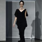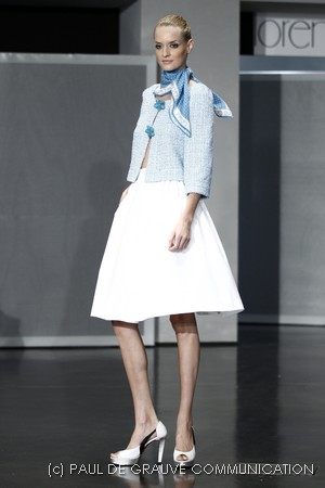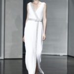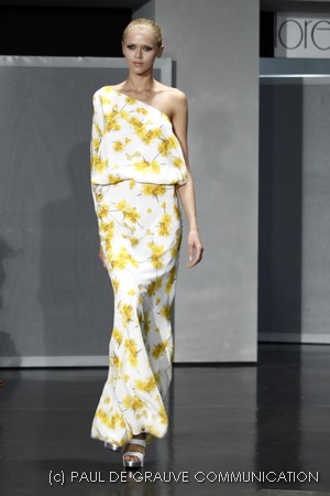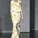 E se i capi chiave della collezione sono abiti dalla linea leggera e scivolata, lo stilista sembra cambiare registro quando porta in passerella i completi in jaquard di cotone con fiori argentati.