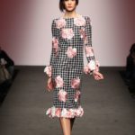 La presenza di fiori applicati o ricamati è il tema che maggiormente si ripete: sulle scollature, sulle gonne e le giacche ed abiti; fiori in bianco o in rosa applicati anche sugli stampati pied-de-poule e poi sui polsi e sull’orlo; grandi fiori con rami e foglie ricamati sull’ abito écrue e piccoli fiori ricamati sull’abito monospalla color ghiaccio.